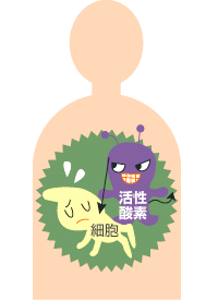 活性酸素は殺菌作用が強く、体内に侵入してきたウイルスや細菌などを攻撃して退治する働きをし、損傷した細胞を速やかに分解して、新しい細胞に入れ替える仕事もしています。